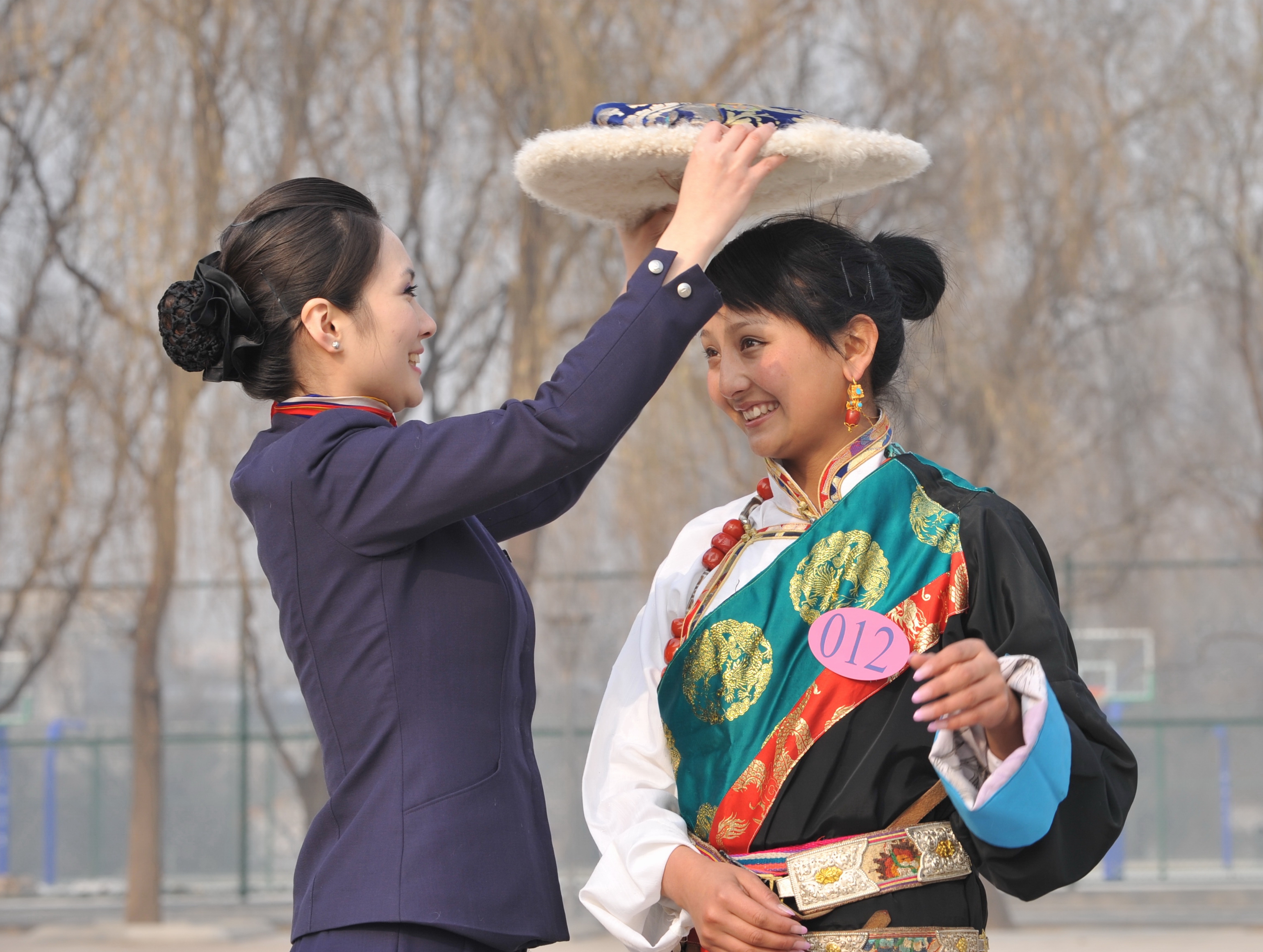2007年起,中國東航在西藏持續(xù)做好航線運(yùn)營,不僅在拉薩招聘當(dāng)?shù)貑T工,還在全國范圍內(nèi)招聘藏族乘務(wù)員,利用飛機(jī)客艙平臺開展藏語服務(wù)。
