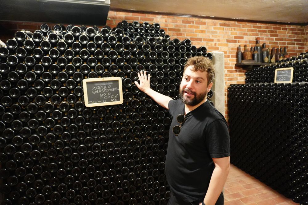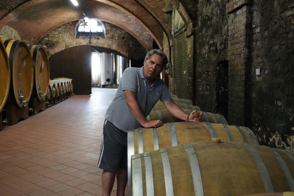 8月17日,在意大利塞拉倫加達爾巴鎮(zhèn),圭多·波羅酒莊的掌門人法比奧·波羅在酒莊地窖里工作。新華社記者張馨文攝