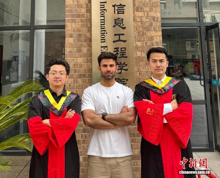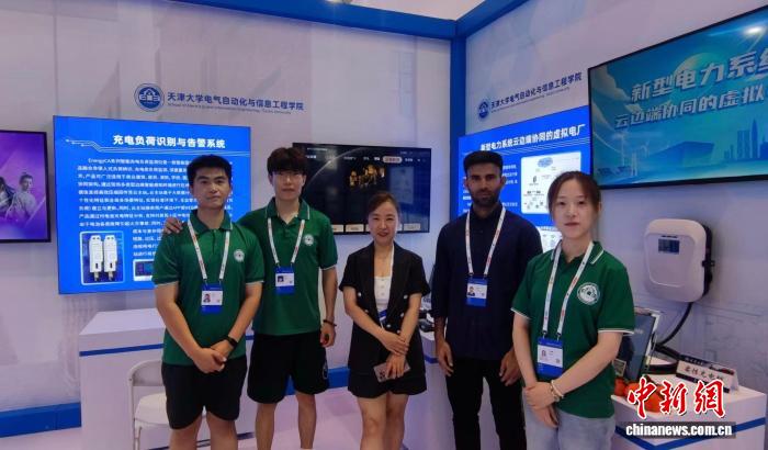 2024年6月,世界智能產(chǎn)業(yè)博覽會期間,穆罕默德·沙拉爾與導師和實驗室同學一起參與相關(guān)科研成果展陳工作。(天津大學 供圖)