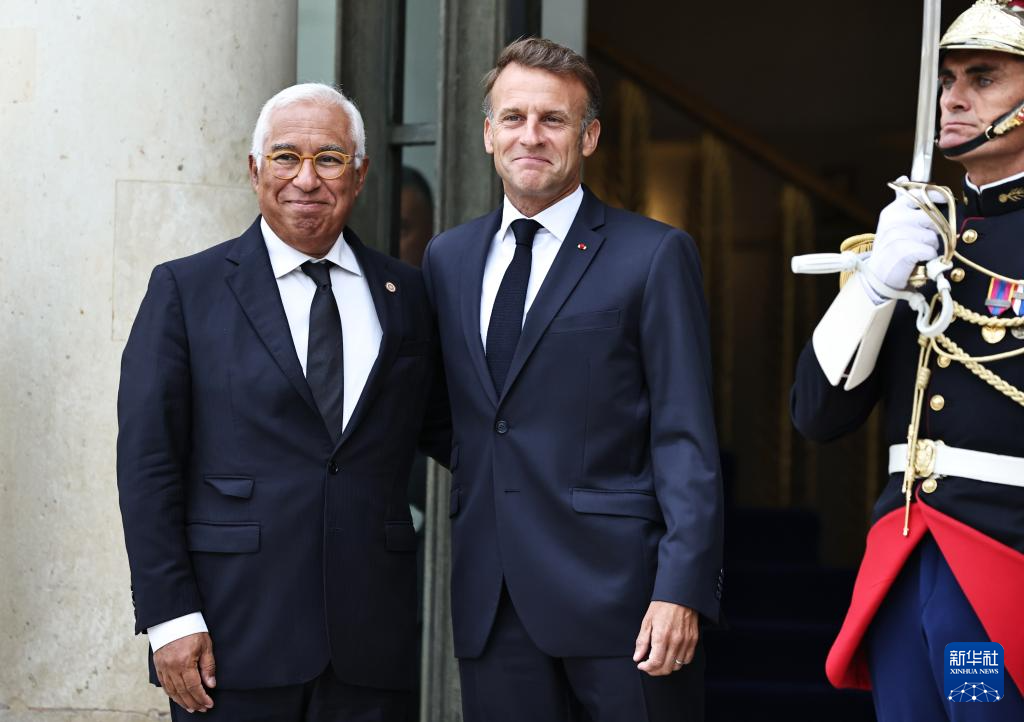 9月4日,在法國首都巴黎的總統(tǒng)府愛麗舍宮,法國總統(tǒng)馬克龍迎接出席“志愿聯(lián)盟”線上會(huì)議的歐洲理事會(huì)主席科斯塔(左)。新華社記者 高靜 攝