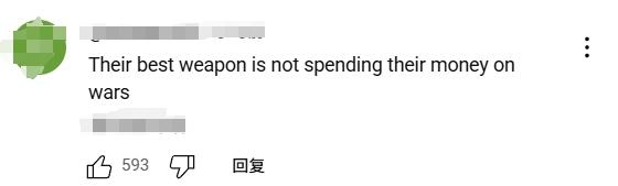有美國(guó)網(wǎng)友表示,中國(guó)最好的“武器”,是不把錢花在發(fā)動(dòng)戰(zhàn)爭(zhēng)上。