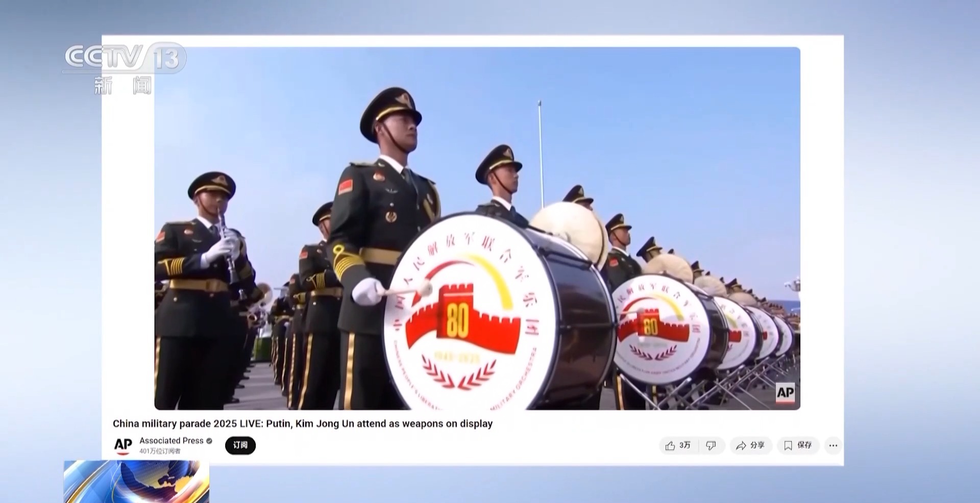 在歐洲,英國廣播公司(BBC)、英國天空電視臺、法國商業(yè)調頻電視臺、意大利廣播電視公司、德國電視一臺、德國電視二臺等歐洲40多個國家和地區(qū)的電視臺及新媒體平臺對紀念大會和閱兵式進行報道。