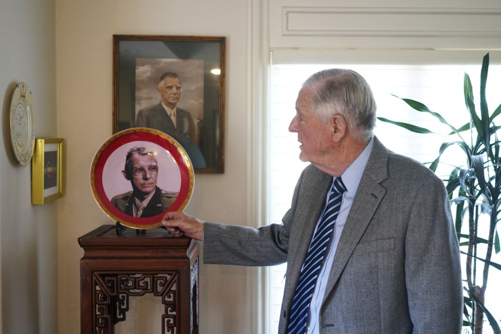 8月11日,史迪威外孫伊斯特布魯克在家中接受新華社記者采訪。新華社記者 吳曉凌 攝