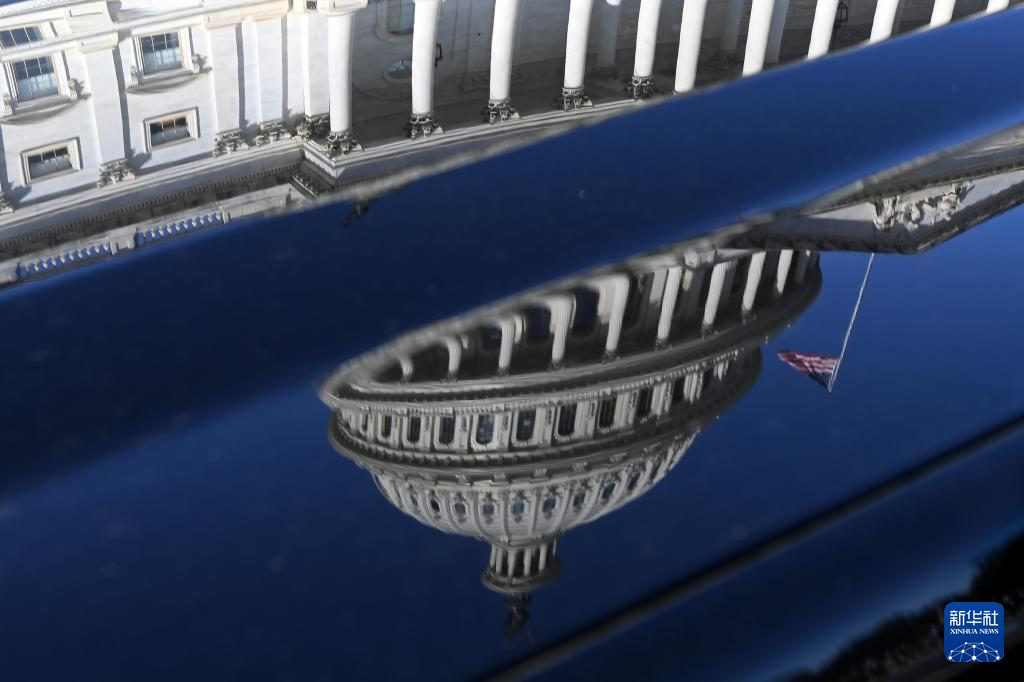 這是10月1日在美國首都華盛頓拍攝的美國國會(huì)大廈倒影。新華社記者 李睿 攝