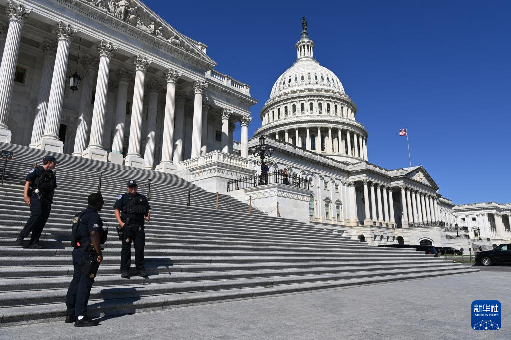 10月1日,在美國首都華盛頓,警察在美國國會(huì)大廈前警戒。新華社記者 李睿 攝