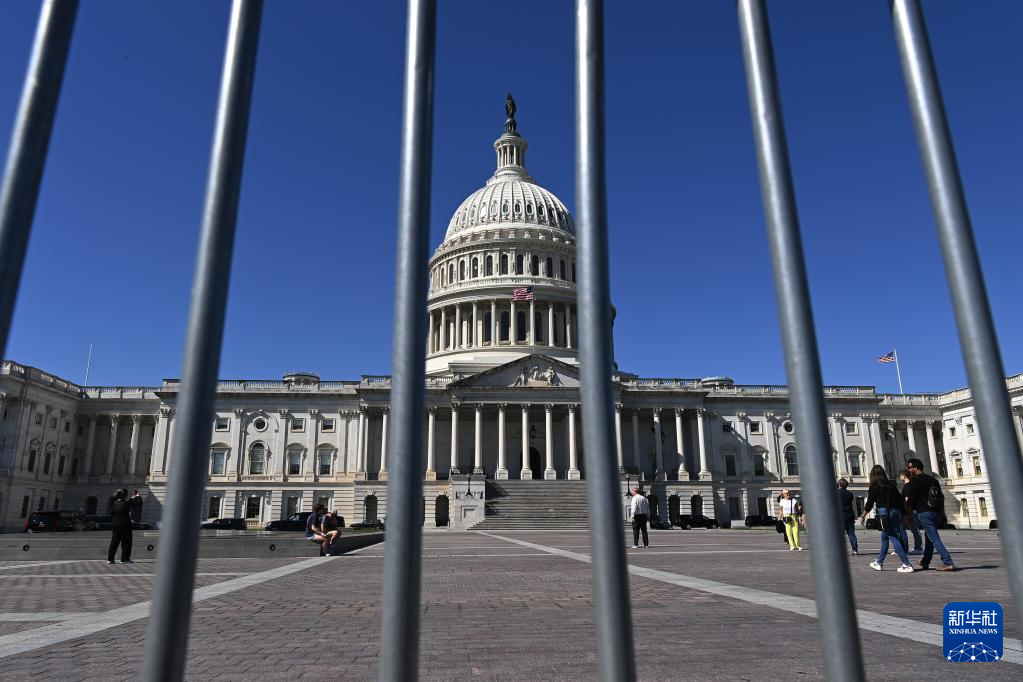 這是10月1日在美國首都華盛頓拍攝的美國國會(huì)大廈。新華社記者 李睿 攝