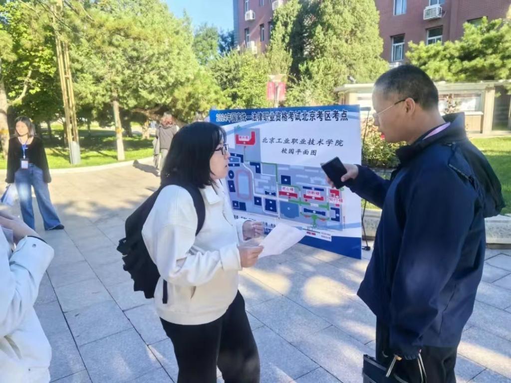 9月21日,考生經(jīng)過身份核驗進(jìn)入2024年法考北京考區(qū)考點。(北京市司法局供圖)