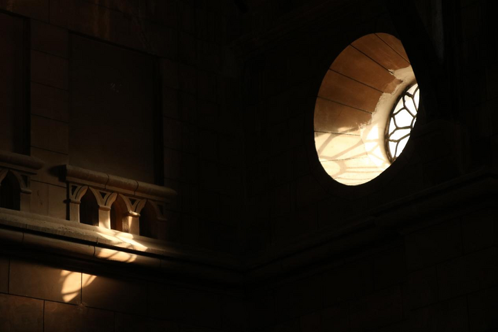 傍晚時(shí)分,夏風(fēng)習(xí)習(xí),天色黛青。我坐在棕色的椅子上,悠揚(yáng)的大提琴聲從穹頂上緩緩落下,浸潤在斑駁的石柱縫隙里,又飄浮于塵埃之上,圓形天窗下有一道水滴形狀的光斑。在這樣的傍晚,每個(gè)人都能感受到安里甘的美。