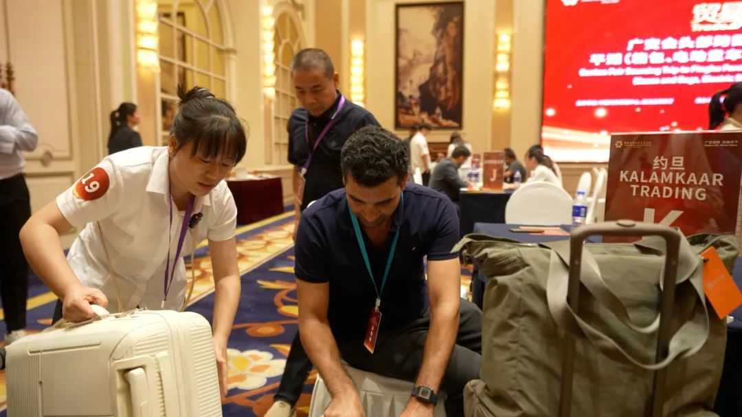 最早,當?shù)刈龅氖遣剂喟?,用服裝廠的邊角料拼的。如今,產(chǎn)品已從最初的手提包、布袋,升級為拉桿箱、背包等。有的帶水杯架,甚至還能自己稱重、有充電USB接口……
