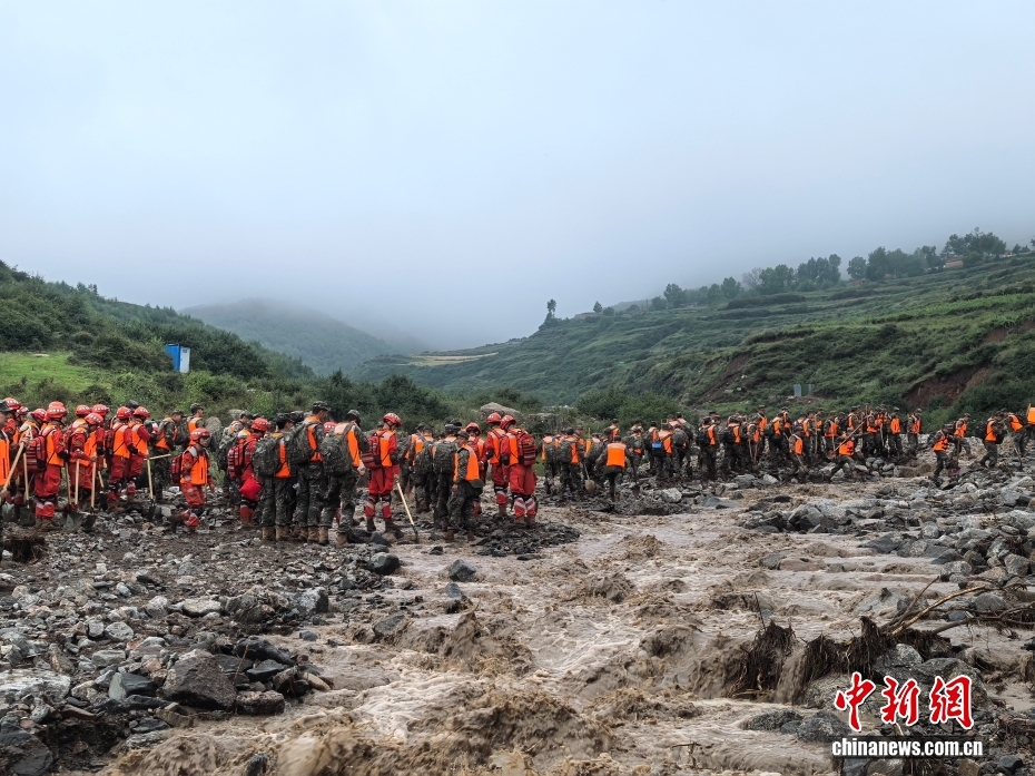 8月8日,武警甘肅總隊(duì)機(jī)動(dòng)支隊(duì)官兵在甘肅省蘭州市榆中縣馬坡鄉(xiāng)舊莊溝村展開救援。劉昆 攝