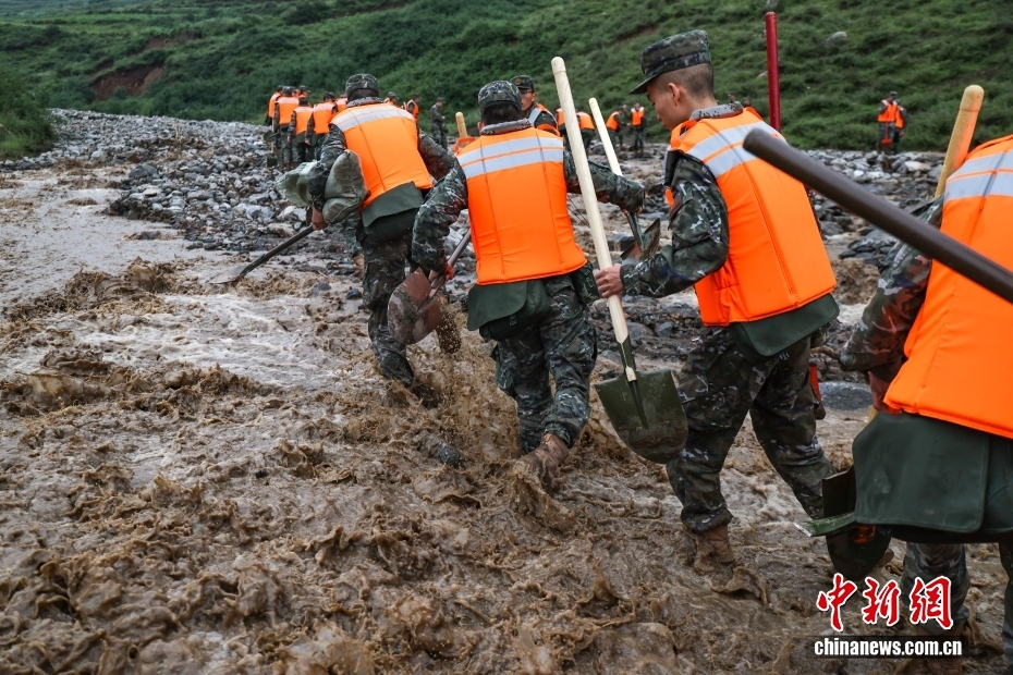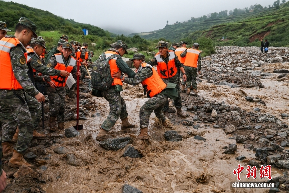 截至8日晚,武警甘肅總隊(duì)投入396名兵力開展道路清淤、人員搜救、搬運(yùn)物資等救援行動(dòng),共轉(zhuǎn)移群眾171人、搜救被困群眾5人、救治受傷群眾2人、清理危房6處、轉(zhuǎn)移受損車輛12輛,累計(jì)清理淤泥、山石700余方,搜索河道6公里、搶通道路2300米。圖為8月8日,武警甘肅總隊(duì)機(jī)動(dòng)支隊(duì)官兵挺進(jìn)災(zāi)區(qū)甘肅省蘭州市榆中縣馬坡鄉(xiāng)舊莊溝村展開救援。劉昆 攝