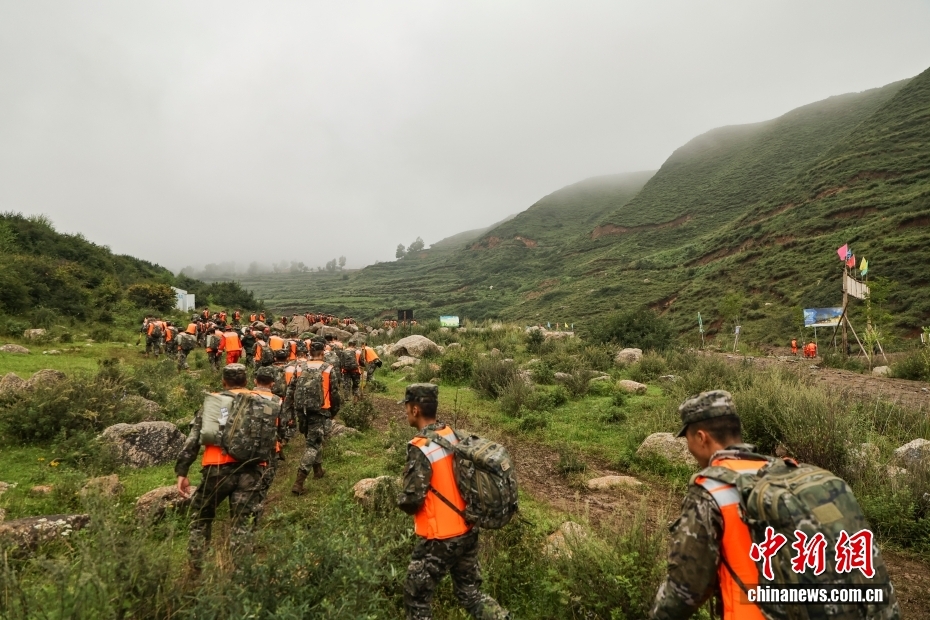 8月8日,武警甘肅總隊(duì)機(jī)動(dòng)支隊(duì)官兵挺進(jìn)災(zāi)區(qū)甘肅省蘭州市榆中縣馬坡鄉(xiāng)舊莊溝村展開救援。劉昆 攝