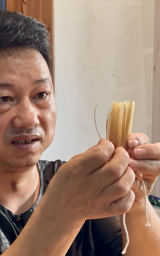在杭州市余杭區(qū)徑山村,走出茶道空間,不遠(yuǎn)處,是“茶筅制作技藝”非遺項(xiàng)目代表性傳承人陳金信工作室?!斑@是茶筅,抹茶中用來(lái)融化茶粉的工具,其實(shí)起源于我們中國(guó)?!痹陉惤鹦诺那墒窒?,一把散開(kāi)的茶穗,漸成彎曲形狀。