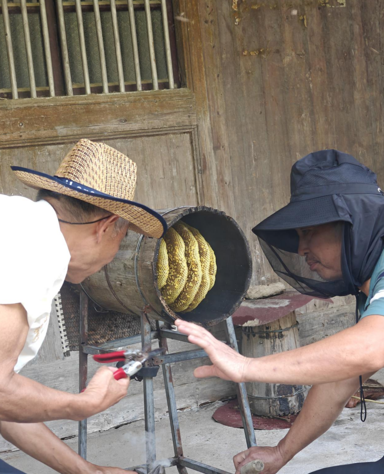 臺(tái)州仙居縣林坑村,蜂農(nóng)張建平的蜂蜜收割,吸引了不少人駐足觀賞。