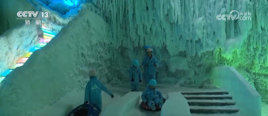 在淮南市焦崗湖畔的“冰簾洞天”景區(qū),游客們仿佛“穿越”到了冬天。1.5公里長的游玩線路涵蓋了冰上漂流、冰上保齡球等項目,大人、孩子們穿上厚厚的衣服,感受速度與激情。