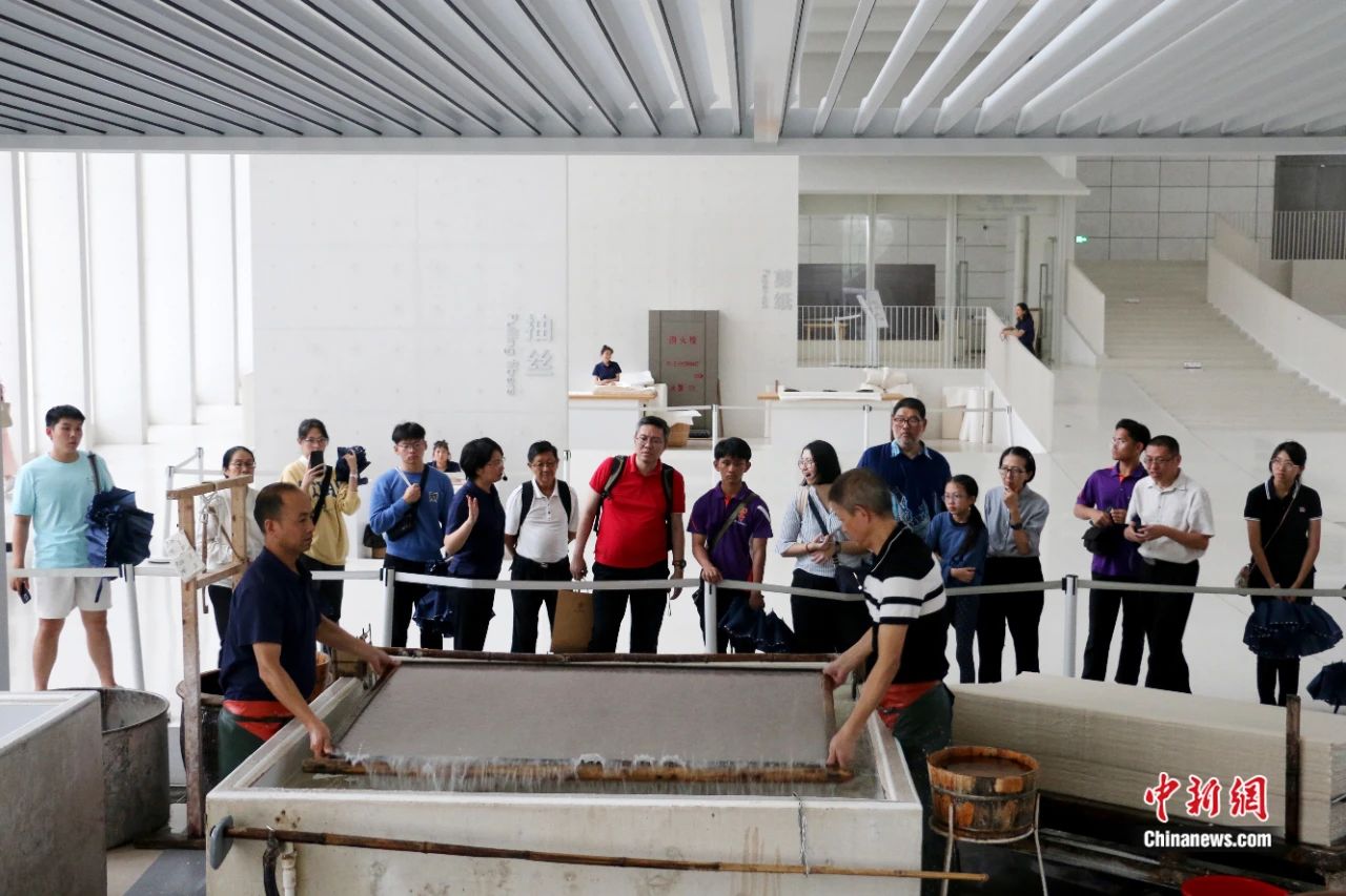 馬來西亞游客在中國宣紙小鎮(zhèn)參觀宣紙撈紙技藝。張強 攝
