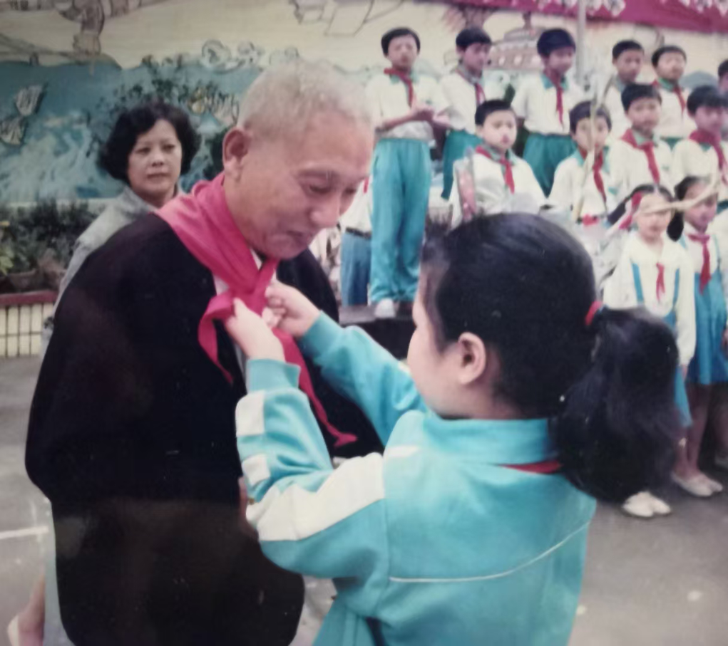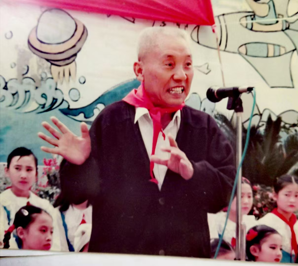 ↑李德富為漢口鄱陽街小學師生進行愛國主義教育演講