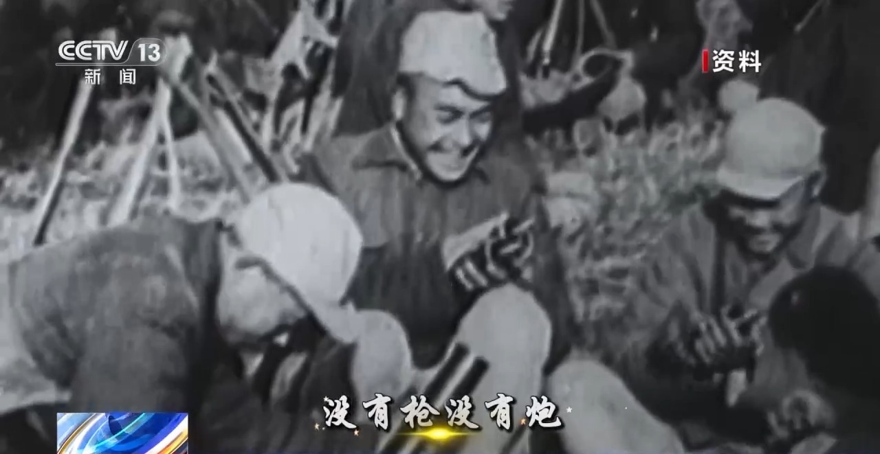 沒有吃,沒有穿,自有那敵人送上前,沒有槍,沒有炮,敵人給我們造。