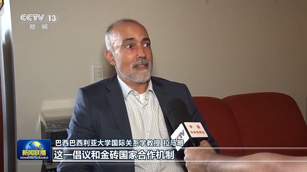 巴西巴西利亞大學(xué)國(guó)際關(guān)系學(xué)教授 拉馬略:習(xí)近平主席提出的共建“一帶一路”倡議非常積極,這一倡議和金磚國(guó)家合作機(jī)制為各國(guó)提供了新的合作途經(jīng),使他們能夠更協(xié)調(diào)地應(yīng)對(duì)壓力,金磚國(guó)家合作機(jī)制不僅對(duì)全球南方國(guó)家有益,對(duì)全球同樣重要,有助于實(shí)現(xiàn)共贏,這就是它的重要性所在。