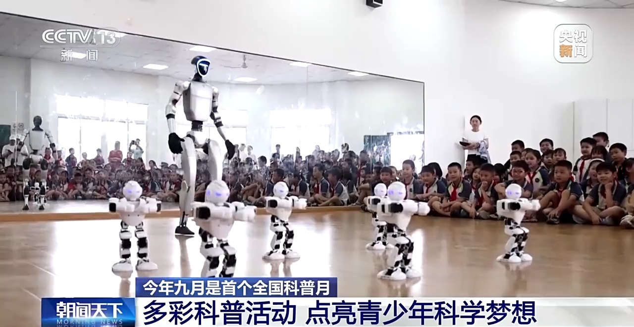 在江西南昌象湖實(shí)驗(yàn)學(xué)校,一場(chǎng)洋溢著濃濃“科技范”的科普體驗(yàn)活動(dòng)正在舉行。在“科技展演”區(qū),6臺(tái)小型舞蹈機(jī)器人靈活地扭動(dòng)身體,整齊劃一的動(dòng)作引來陣陣掌聲,萌態(tài)十足的仿生機(jī)械狗還可以和學(xué)生們交流互動(dòng)。