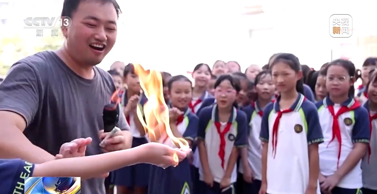 在“科技魔法秀體驗(yàn)”區(qū),“火焰掌”表演讓同學(xué)們親身感受化學(xué)反應(yīng)的奇妙。這個(gè)看似“魔法”的現(xiàn)象,實(shí)則蘊(yùn)含著燃燒條件、導(dǎo)熱材料等科學(xué)原理。