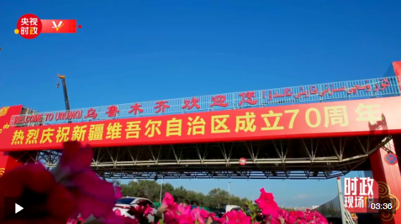 中共中央總書記、國家主席、中央軍委主席習(xí)近平率中央代表團(tuán)23日下午乘專機(jī)抵達(dá)烏魯木齊,出席新疆維吾爾自治區(qū)成立70周年慶?;顒?dòng)。14時(shí)20分許,習(xí)近平乘坐的專機(jī)在天山國際機(jī)場降落,等候在停機(jī)坪的新疆各族各界群眾熱烈歡呼。習(xí)近平走下舷梯時(shí),少先隊(duì)員獻(xiàn)上鮮花。各族群眾代表身著民族服飾,載歌載舞,歡迎總書記的到來,表達(dá)對總書記的衷心祝福。