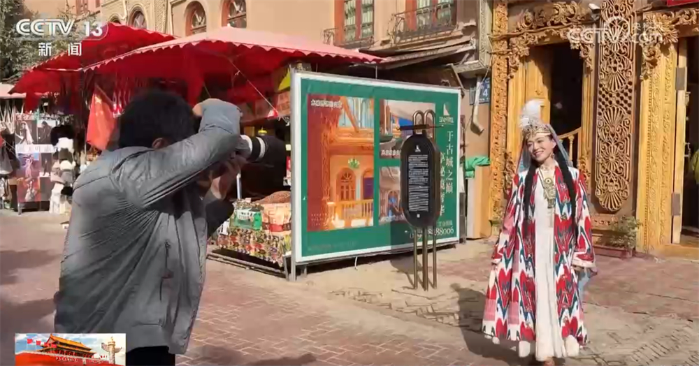 在新疆喀什古城景區(qū),這幾天每天都舉行開城儀式,迎接來自全國各地的游客。古城街巷里更是掛滿了國旗,讓人們感受到濃濃的國慶氛圍。景區(qū)人氣火爆也帶來商業(yè)機遇,身著民族傳統(tǒng)服飾的游客隨處可見,旅拍攝影師則在一旁記錄。