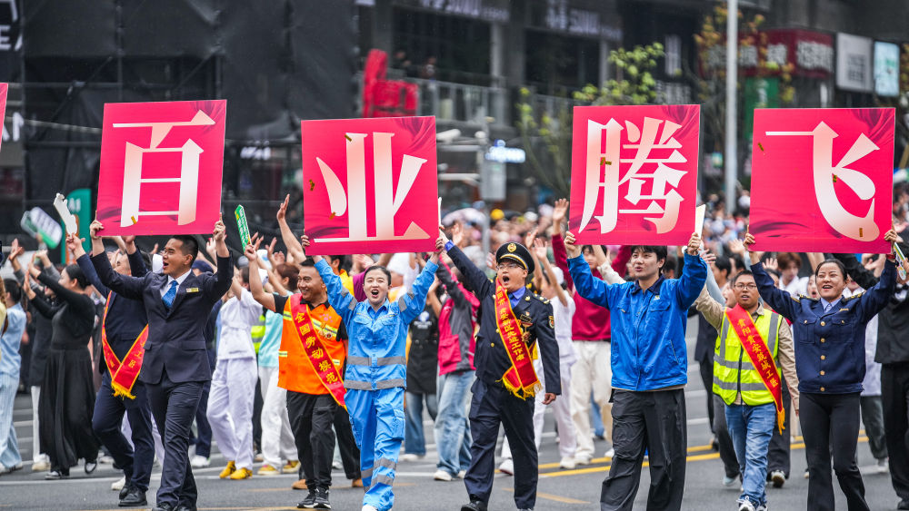 2025年5月18日,貴州民族團(tuán)結(jié)大巡游活動(dòng)在貴州省貴陽市舉行。這是奮斗之光方陣的表演隊(duì)伍在進(jìn)行巡游。新華社記者 陶亮 攝
