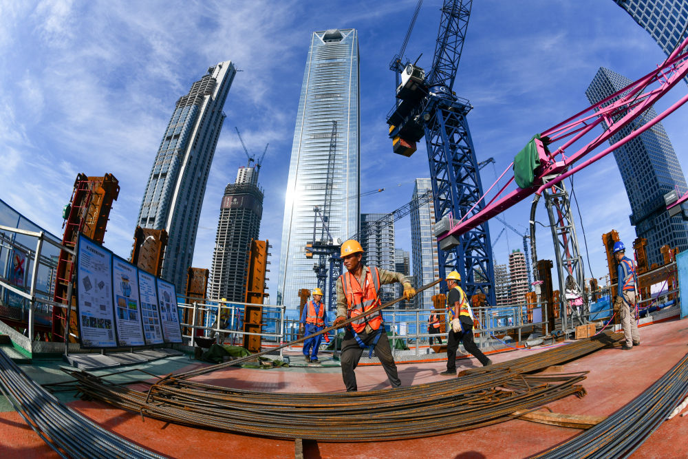 2024年10月3日,中建五局的建設(shè)者在深圳灣超級(jí)總部基地C塔項(xiàng)目建設(shè)現(xiàn)場(chǎng)施工。新華社記者 梁旭 攝