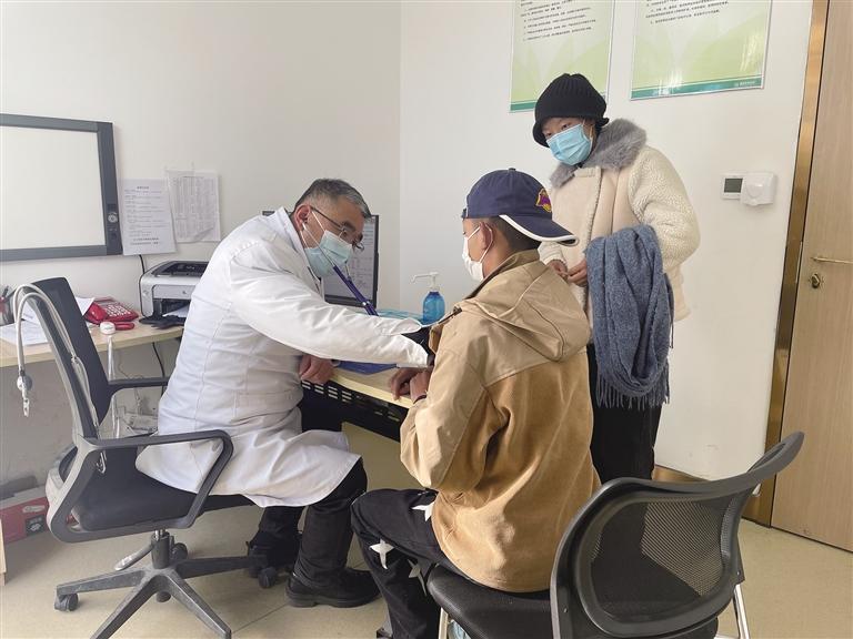 阜康醫(yī)院醫(yī)生正在為兒童患者聽(tīng)診。