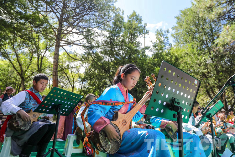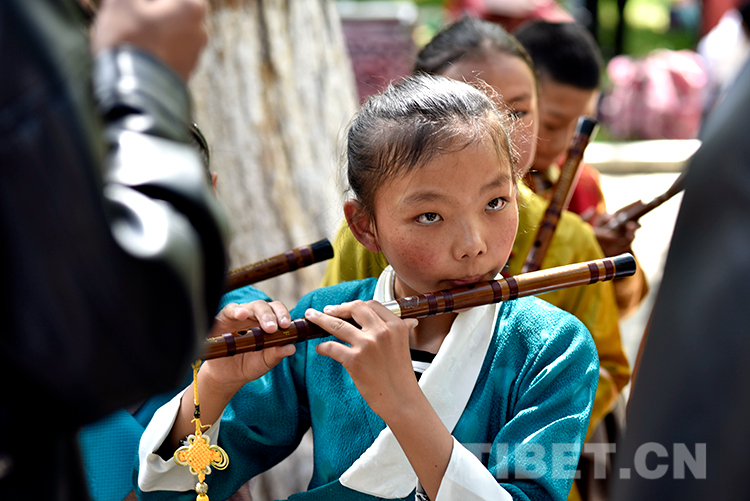 中國(guó)西藏網(wǎng)訊 6月16日,西藏自治區(qū)堆龍德慶區(qū)青少年活動(dòng)中心春季課程展演活動(dòng)在嗩吶演藝的《好漢歌》中拉開序幕。此時(shí),羅布林卡藏戲演出臺(tái)前已聚攏了許多家長(zhǎng)和市民。