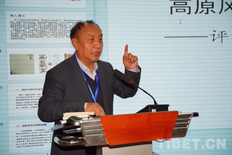 圖為西藏文藝評(píng)論家協(xié)會(huì)秘書長(zhǎng)李洪川作主題發(fā)言