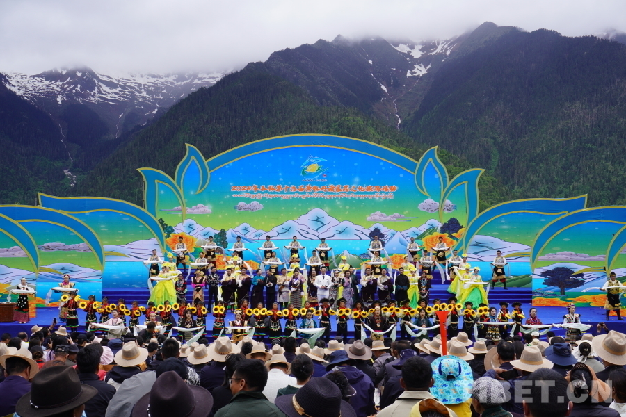 開幕式在群舞《丹旭承韻》中拉開序幕,《百鳥爭鳴》《圣潔米林·心之向往》《咱們西藏》《高原紅》《同心同行》等14個民俗特色歌舞依次上演,知名歌手容中爾甲、三農(nóng)主播阿佳旺姆等輪番上臺,為當?shù)厝罕姾陀慰蛶硪粓鼍实亩嗝褡逄厣栉枋⒀?。悠揚婉轉(zhuǎn)的民族歌曲、多姿多彩的非遺舞蹈、耳熟能詳?shù)某绷饕魳?,獲得現(xiàn)場掌聲、歡呼聲不斷。