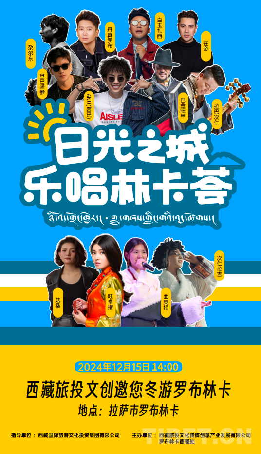 活動(dòng)將于12月15日14:00正式開(kāi)始,旺卓措、ANU(宮巴)、巴金旺甲、丹真羅布等知名藏族歌手將為觀眾帶來(lái)精彩絕倫的表演。觀眾在現(xiàn)場(chǎng)除了感受音樂(lè)魅力、領(lǐng)略西藏文化風(fēng)情外,還有豐富的美食及文創(chuàng)集市。