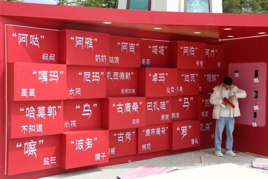 開幕式主會(huì)場(chǎng)經(jīng)過近一周加班加點(diǎn)的搭建,已可見雛形,開幕式主會(huì)場(chǎng)舞臺(tái)以桃花花瓣形狀設(shè)計(jì)LED背景屏與舞臺(tái),會(huì)場(chǎng)周邊也做了諸多氛圍設(shè)計(jì),包括各縣區(qū)特色展房與展臺(tái)。