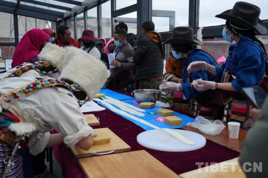 圖為“拉拉”和“推”制作現(xiàn)場。“拉拉”和“推”是藏北獨具特色的一種高品質(zhì)乳制品,它可以給牧民提供極高的營養(yǎng),是招待客人和饋贈親朋好友的食物之一。