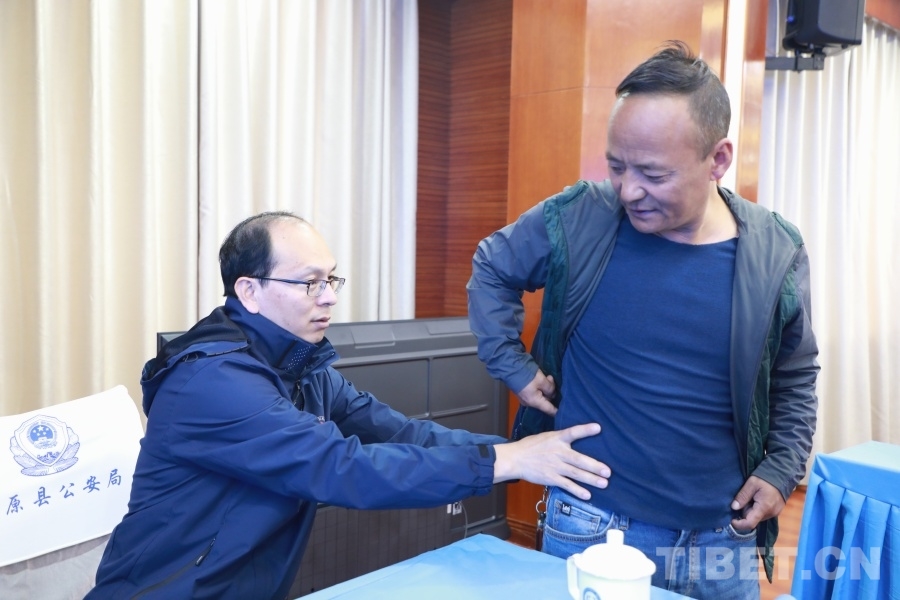 5月17日,在此次活動阿壩州紅原縣現(xiàn)場之一,“紅九團紅二連”來自北京通州區(qū)各醫(yī)院的12位醫(yī)生,在紅原縣公安局面向有就診需求的公安干警展開義診。