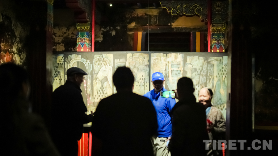 此次展覽中,策展人以“藏地傳統(tǒng)的當(dāng)代轉(zhuǎn)化”為主線,梳理上述不同系列作品,完整呈現(xiàn)出藝術(shù)家的創(chuàng)作脈絡(luò)。展覽標(biāo)題“夢(mèng)瑜伽”,來自《黑經(jīng)書》系列作品的創(chuàng)作故事,清代壁畫環(huán)繞的獨(dú)特古建場(chǎng)域與《黑經(jīng)書》系列作品于光影間輝映,共同營(yíng)造出西藏藝術(shù)歷史與當(dāng)下交錯(cuò)的鏡像,在搭建橋梁、連結(jié)傳統(tǒng)與時(shí)代精神的同時(shí),也引領(lǐng)觀眾走入高強(qiáng)度的精神性探索。