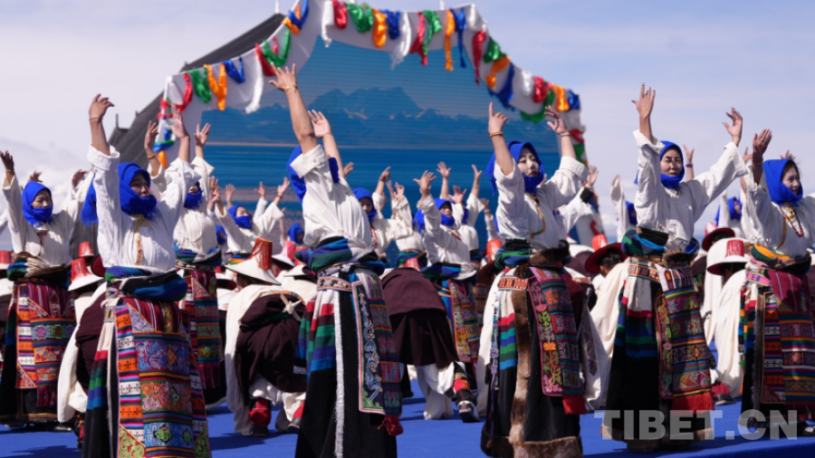 本次納木錯(cuò)開湖日以歌舞為媒,盡情抒發(fā)對(duì)大自然的禮贊,《牧歌贊靈》《湖牧畫意》《圣湖戀曲》三章文藝表演將整個(gè)活動(dòng)推向高潮。身披牦牛氆氌的牧人身影、踏雪而歌的少女形象、象征愛情與信仰的傳說,交織成一幅幅詩意畫卷,深情演繹人與自然、信仰與愛情的動(dòng)人篇章。