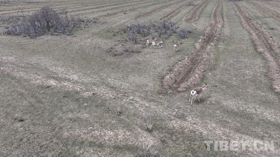 圖為無人機捕捉到的珍貴的野生普式原羚影像,奔跑時,尾部標志性的“心形白斑”清晰可見 青海省文旅廳供圖