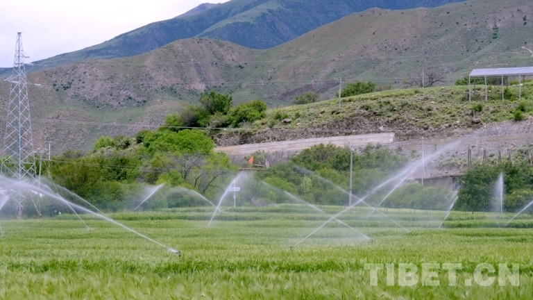 中國西藏網(wǎng)訊 在西藏自治區(qū)昌都市洛隆縣俄西鄉(xiāng)的5G+智慧農(nóng)業(yè)生產(chǎn)示范基地里,隨著負(fù)責(zé)人在按鈕上輕輕一點(diǎn),噴淋設(shè)備啟動(dòng),細(xì)密的水珠從噴頭均勻地噴淋出來,讓地里的青稞苗顯得越發(fā)翠綠。