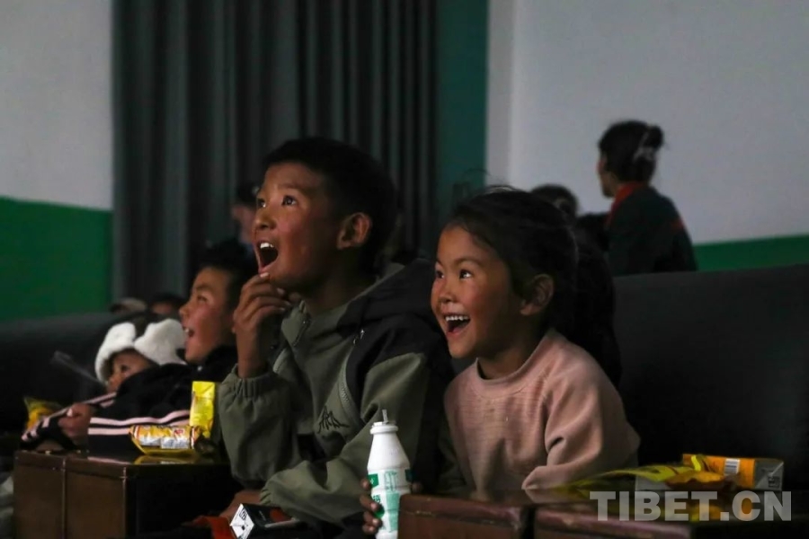 圖為孩子們在觀看電影