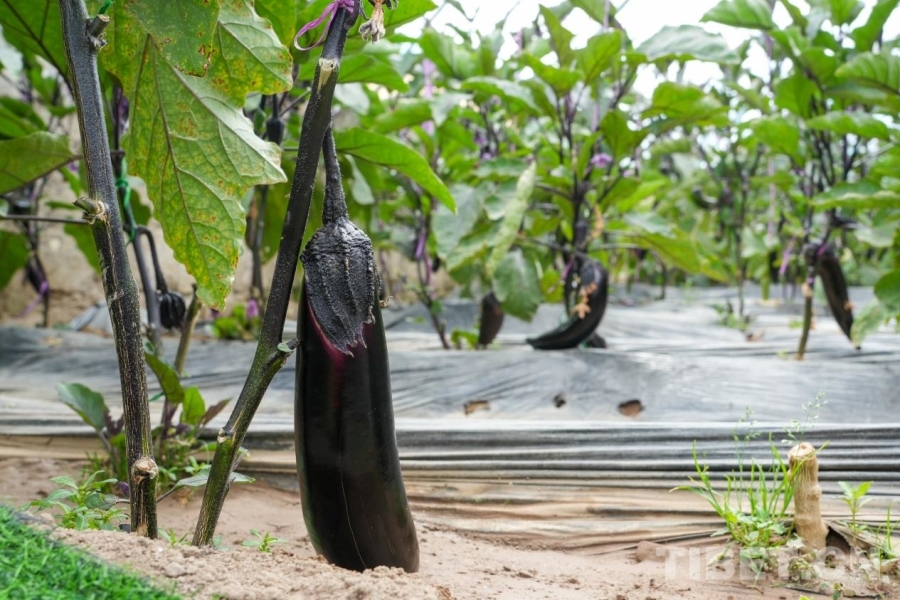 圖為噶爾縣生態(tài)農業(yè)產業(yè)園區(qū)的溫室大棚內種植的茄子 攝影:邊子捷