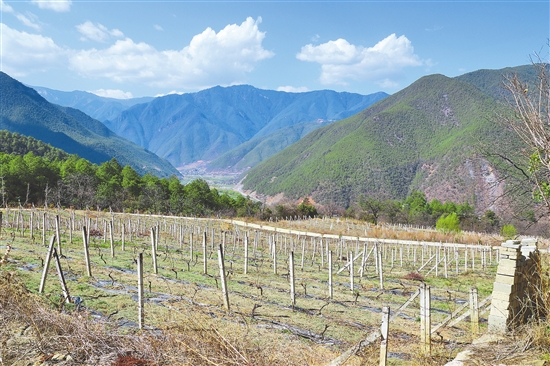 在德欽縣云嶺鄉(xiāng)斯農(nóng)村,從房前屋后直到高山腳下,整齊的葡萄架綿延成片,種植面積已達(dá)1035畝。從2012年起,香格里拉酒業(yè)和梅里酒莊等企業(yè)和該村達(dá)成長期合作,小葡萄成了184戶村民的“致富果”。