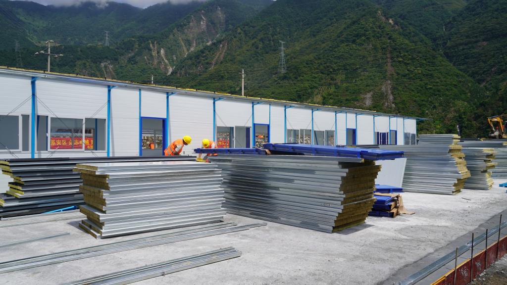在得妥鎮(zhèn)天池山村繁榮集中過渡安置點工地里,200多名施工人員正在抓緊進行安置點的板房安裝。“目前我們已完成120套板房安裝,預(yù)計受災(zāi)群眾可于10月初入住?!笨偝邪鼏挝蝗A西集團四川省建筑機械化工程有限公司項目負責人王偉介紹,該安置點還將配備公共衛(wèi)生間、公共浴室、廚房、健身器材等設(shè)施,為受災(zāi)群眾在過渡安置期間創(chuàng)造安全便利的生活條件。