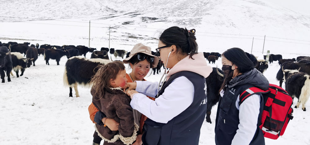 近期,四川省甘孜藏族自治州理塘縣連降大雪,路面結(jié)冰,交通不便,導(dǎo)致居住在海拔4000多米遠(yuǎn)牧區(qū)的牧民遇到看病難等問題。理塘縣村戈鄉(xiāng)中心衛(wèi)生院組織家庭醫(yī)生團(tuán)隊(duì),冒著風(fēng)雪前往遠(yuǎn)牧區(qū),為慢性病患者、孕產(chǎn)婦、老年人及小孩等送醫(yī)送藥。