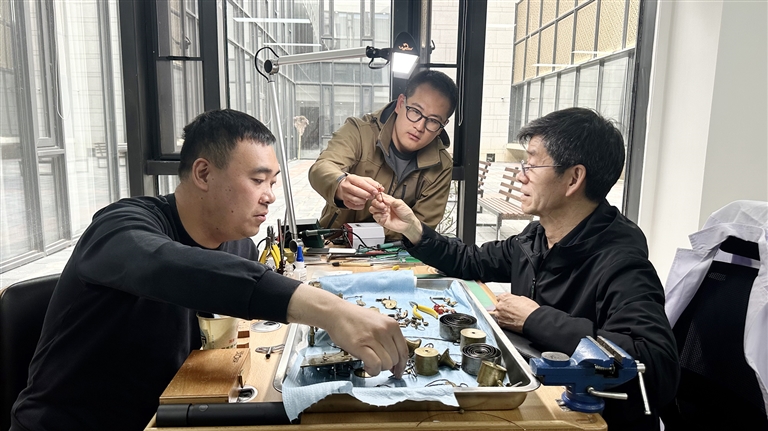 團(tuán)隊成員葛聰也分享了他的感受:“維修時,我們極易沉浸其中,進(jìn)入一種心流狀態(tài)。常常一抬頭,時間已悄然流逝——從第一次看表時的8點,到再次抬眼時已到12點。這份對鐘表的熱愛與專注,激勵著我們不斷前行?!?/p>