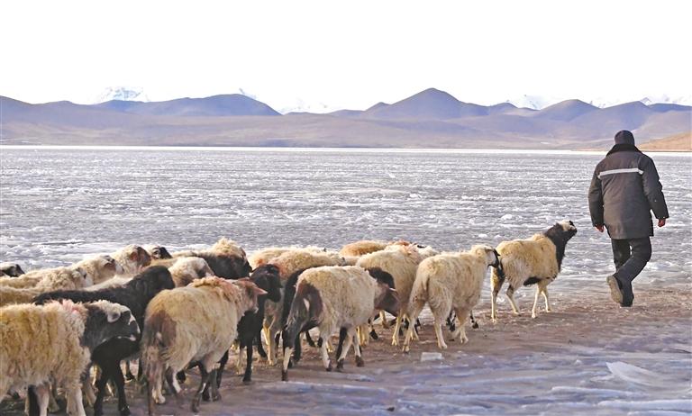 在西藏山南巍峨的群山之間,普莫雍錯如同一顆璀璨的藍寶石,鑲嵌在海拔5000多米的高原之上。每年2月,當湖面結(jié)冰封凍時,浪卡子縣推瓦村的村民便會將羊群集結(jié)在一起,通過冰面趕往湖心島過冬,這一過程被稱為“冰上趕羊”。
