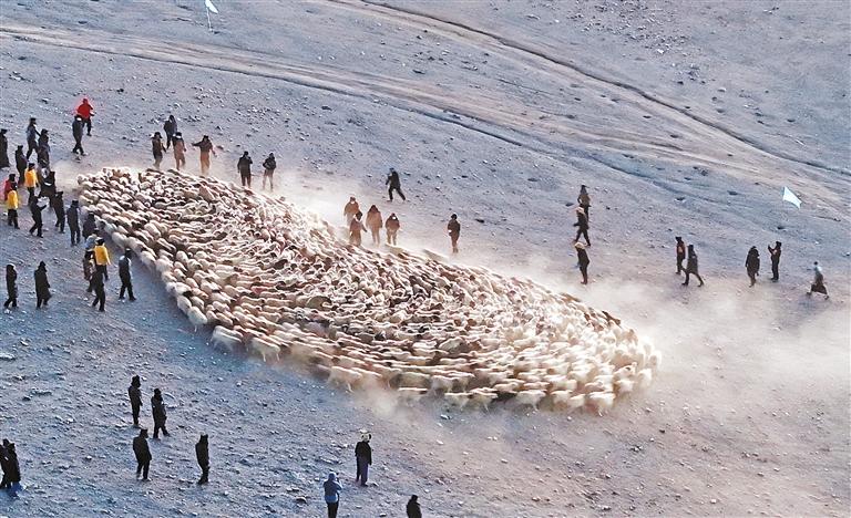 推瓦村牧民將羊群聚攏,準備轉(zhuǎn)場?! ?/p>