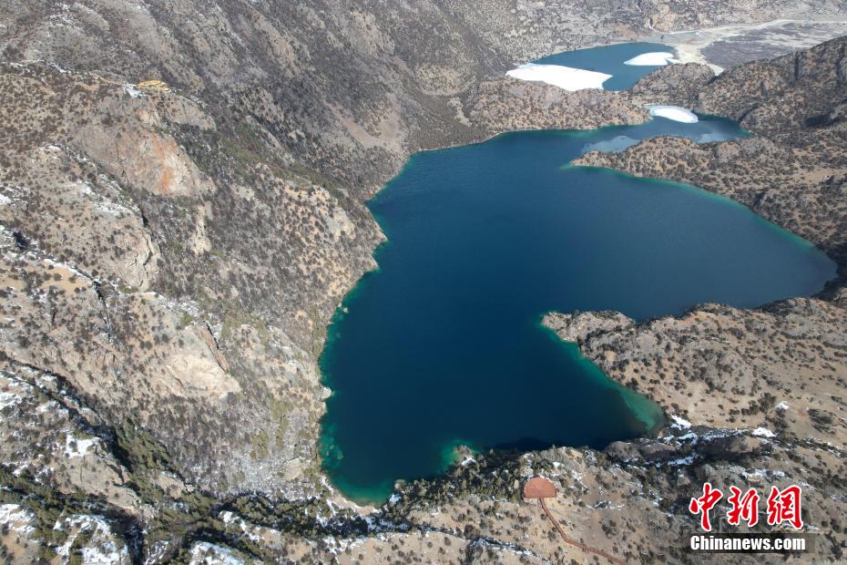 2月16日,位于西藏昌都市邊壩縣的“三色湖”在群山環(huán)抱中景色壯美?!叭庇珊诤?、白湖、黃湖組成,群山環(huán)抱中的三處相鄰湖泊在陽光下分別呈現(xiàn)不同色彩。圖為三色湖景色。中新社記者 李林 攝(無人機照片)